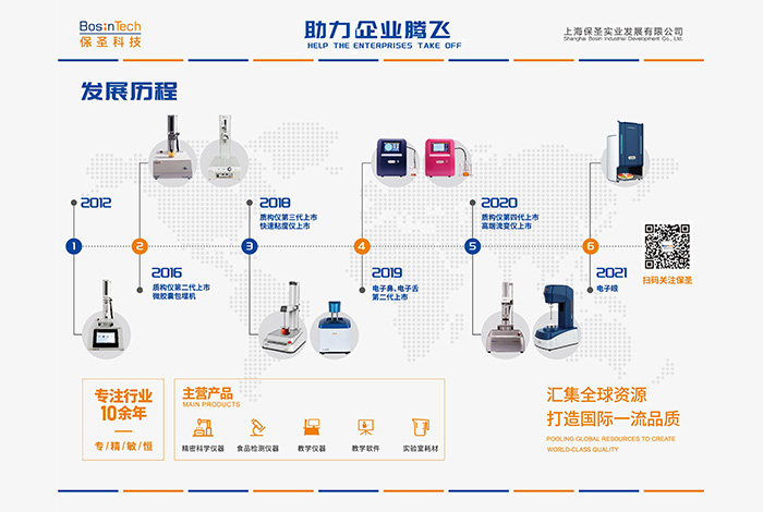 主要產(chǎn)品有:流變儀、質(zhì)構(gòu)儀(物性測試儀)、電子鼻、電子舌、電子眼,快速粘度儀,GC-O, 嗅聞儀,整體感官實驗室,感官分析軟件等。保圣產(chǎn)品堅持高品質(zhì),因此贏得了良好的口碑、加上優(yōu)質(zhì)的服務使得公司產(chǎn)品暢銷國內(nèi)各大高校、研究所、食品、藥品企業(yè)。 并獲得了高度肯定。